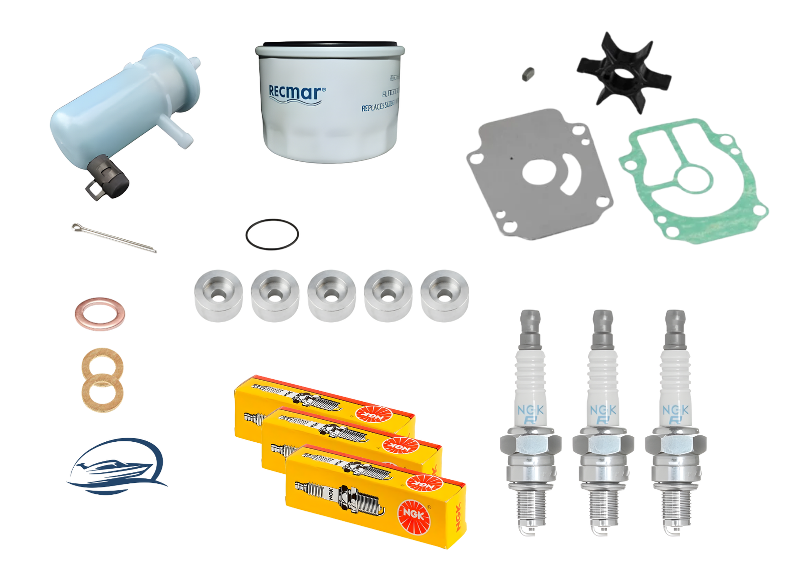 Los kits de Servicio de RECAMBIOSPARABARCOS incluyen una cuidadosa selección de repuestos de distintos fabricantes, los cuales han sido inspeccionados y sometidos a estrictos controles de calidad. Esto nos permite garantizar su total compatibilidad.