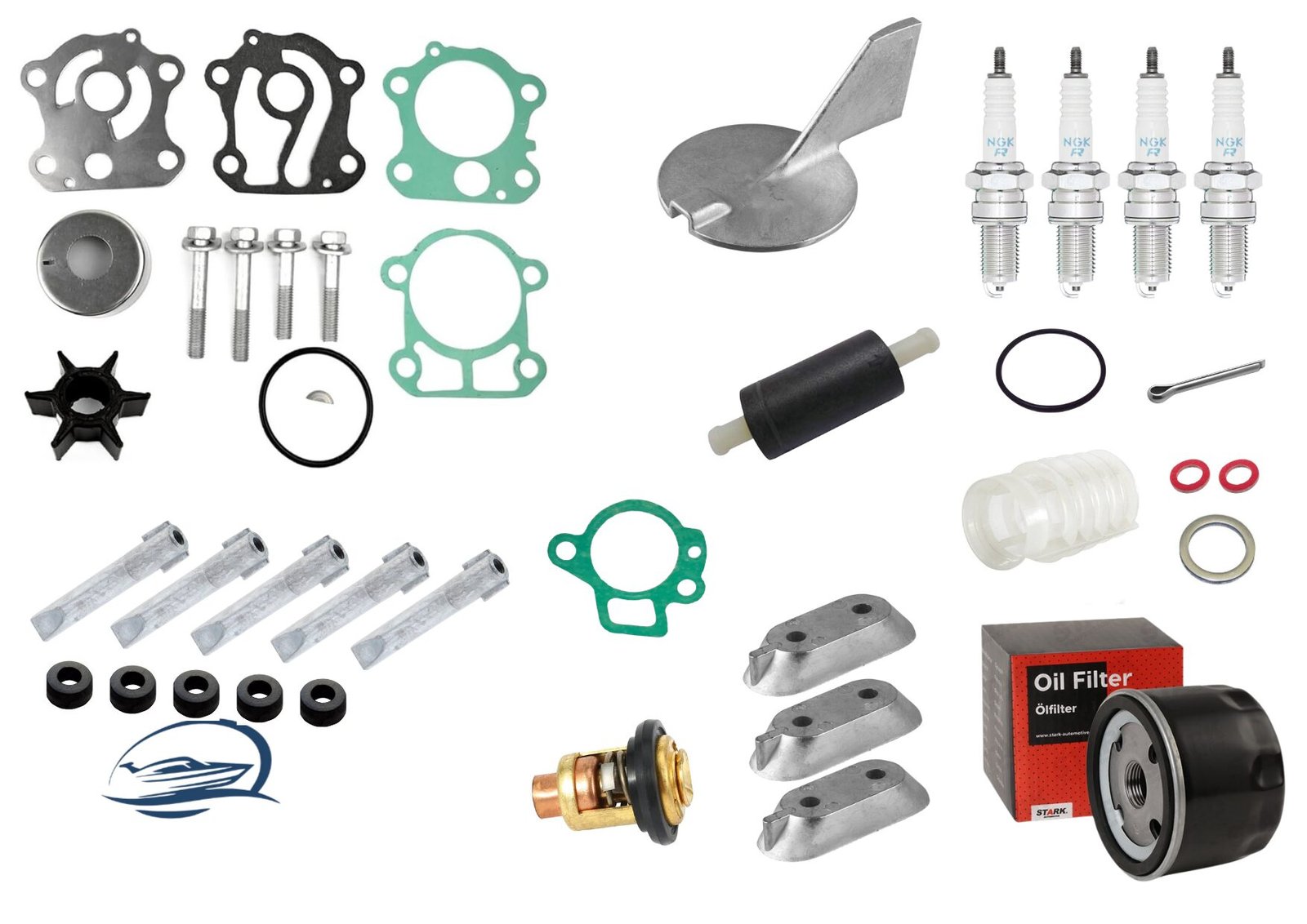 Los kits de Servicio de RECAMBIOSPARABARCOS incluyen una cuidadosa selección de repuestos de distintos fabricantes, los cuales han sido inspeccionados y sometidos a estrictos controles de calidad. Esto nos permite garantizar su total compatibilidad.